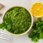 Dopo aver ammorbidito la mollica di pane con l’aceto, strizzatela e mettetela in una terrina con l’uovo sodo, il prezzemolo, i capperi, le acciughe e l’aglio (che potete in alternativa spremere), tutti già tritati, un po’ di sale e di pepe macinato finemente al momento. Con un cucchiaio di legno amalgamate perfettamente gli ingredienti prima di aggiungere l’olio poco alla volta (fatevi aiutare da un’oliera!).