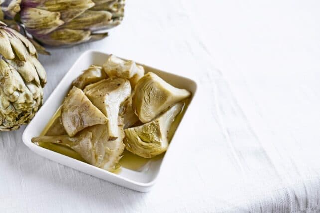 Pulite i carciofi eliminando il gambo, la parte alta delle foglie e quelle più esterne e scure fino ad arrivare al cuore e tagliateli prima in 2 parti e poi a lamelle sottili. Lasciateli marinare con olio d'oliva, succo di limone, sale e pepe.
