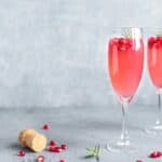 Versare in un tegame mezzo litro di acqua, aggiungervi lo zucchero e portare a ebollizione; far bollire lo sciroppo per circa 10 minuti e farlo quindi raffreddare completamente. Mescolare lo sciroppo di zucchero freddo con il succo di melagrana e versarlo in una brocca trasparente, aggiungervi i chicchi di melagrana e mescolare. Versarvi infine lo spumante ben freddo e servire.